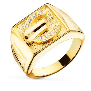 18K SELLO ORO AMARILLO CABALLERO EURO CON PIEDRAS 16X16 MM