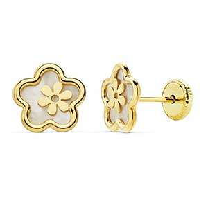 Pendientes de Oro de Niña en Oro de Ley de 18 Kilates.