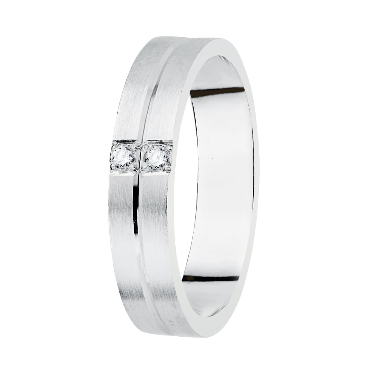 18K ALIANZA ORO BLANCO MATIZADA 4 MM DIAMANTES 0.06 QTS.