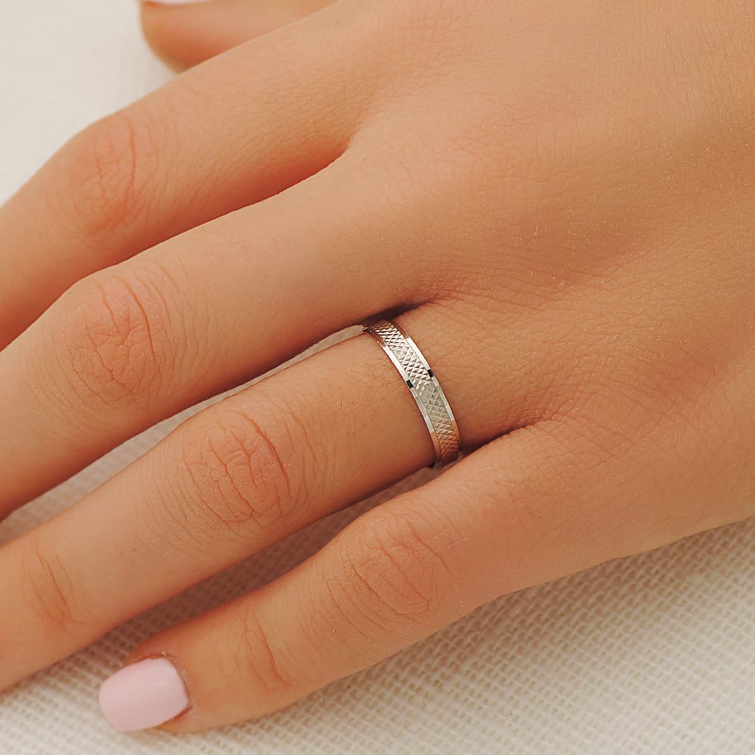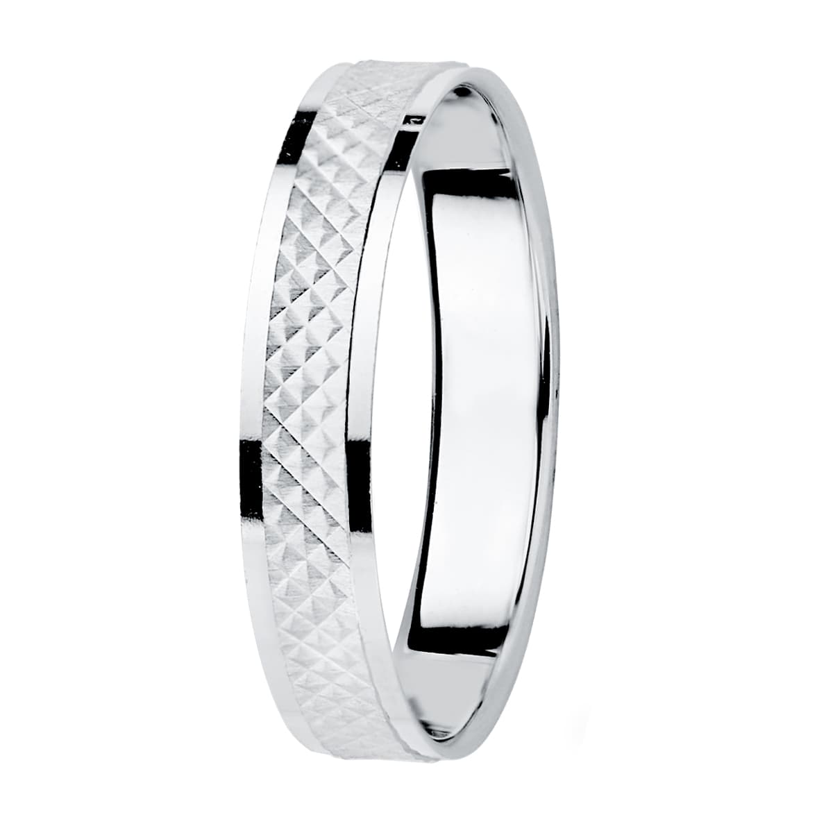 18K ALIANZA ORO BLANCO TALLADA Y BORDES EN BRILLO 3.5 MM