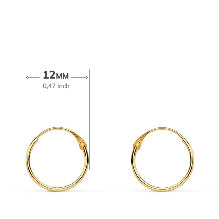 18K AROS ORO AMARILLO REDONDOS LISOS LIGEROS 12X1 MM