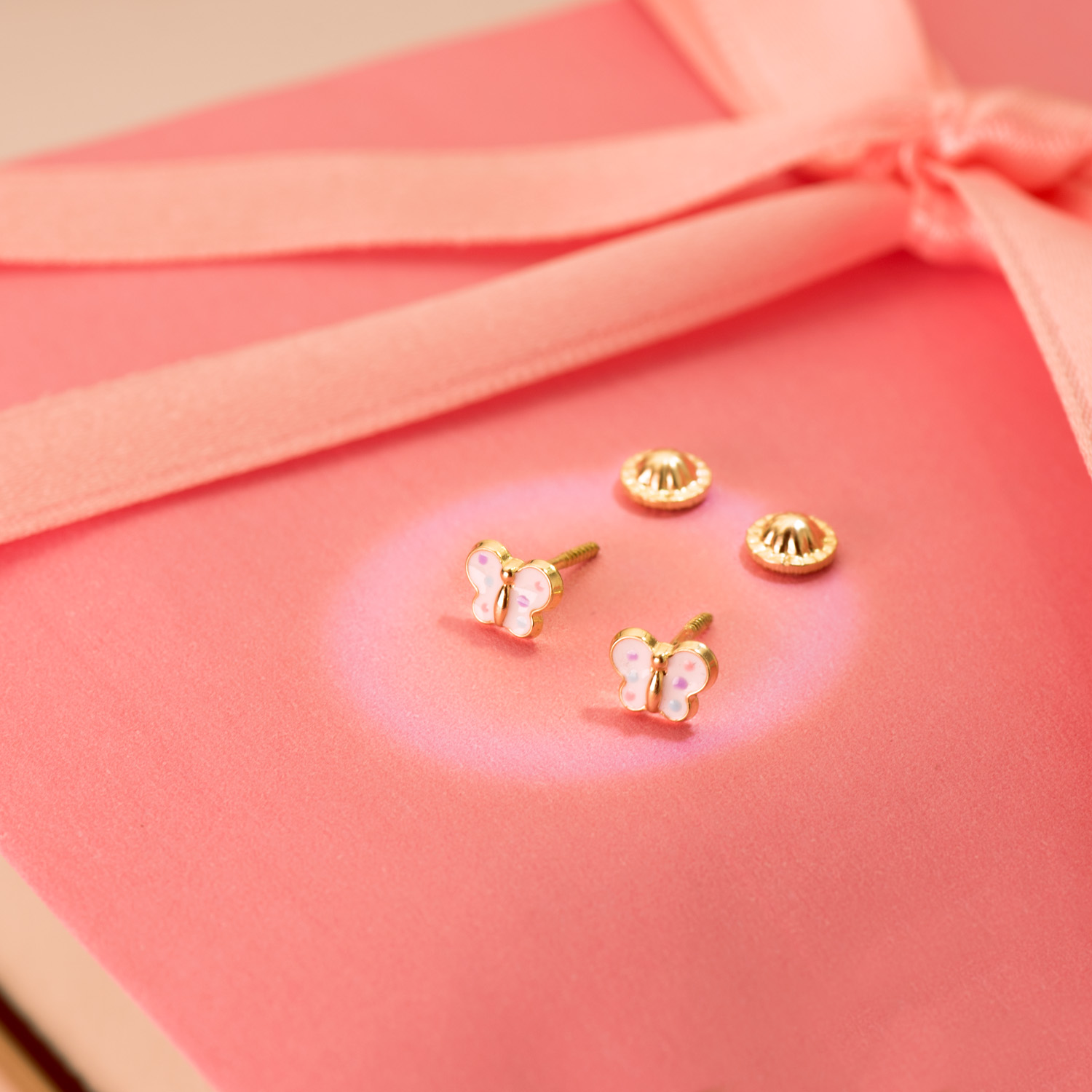 18K PENDIENTES ORO AMARILLO MARIPOSA ESMALTE 6 X 4,5 MM CIERRE TUERCA