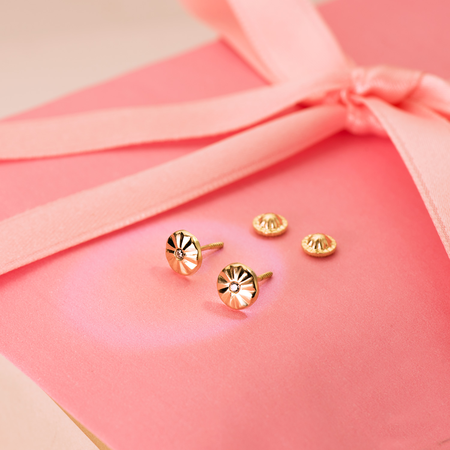 18K PENDIENTES ORO AMARILLO REDONDOS CON CIRCONITAS 6,5 MM CIERRE TUERCA