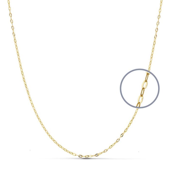 18K CADENA ORO AMARILLO ESLABONES OVALES TALLADOS. ANCHO: 1MM LARGO: 50 CM