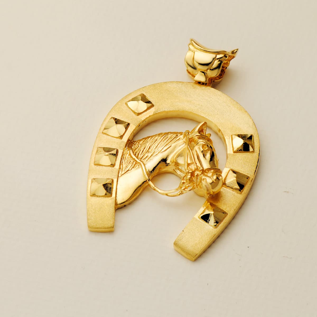 18K COLGANTE ORO AMARILLO HERRADURA CON CABALLO 48X40 MM
