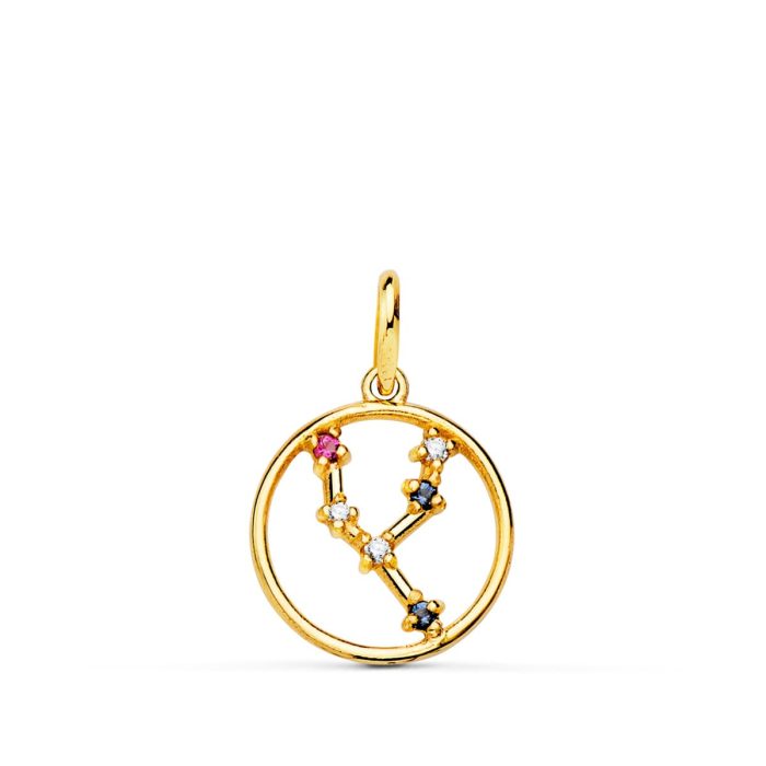18K COLGANTE ORO AMARILLO HOROSCOPO TAURO CONSTELACIONES CIRCONITAS COLOR 12 MM