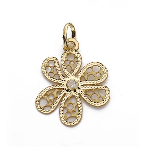 18K COLGANTE FLOR CALADA CIRCONITA 19X15 MM