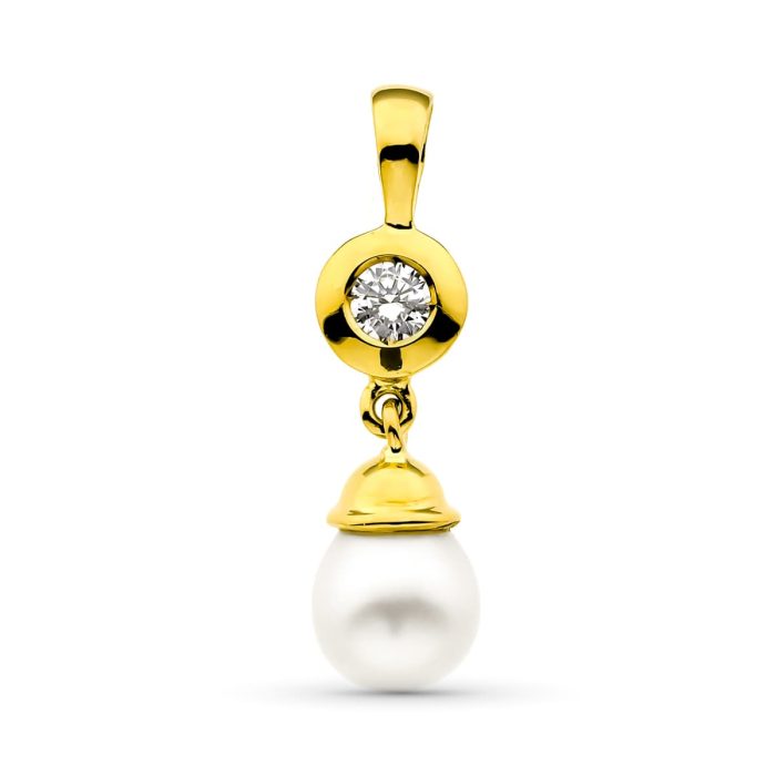 18K COLGANTE ORO AMARILLO CON CIRCONITA Y PERLA CULTIVADA RIO