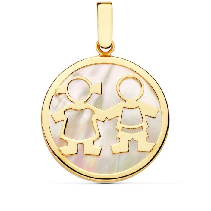 18K COLGANTE ORO AMARILLO NACAR NIÑO-NIÑA 20 MM