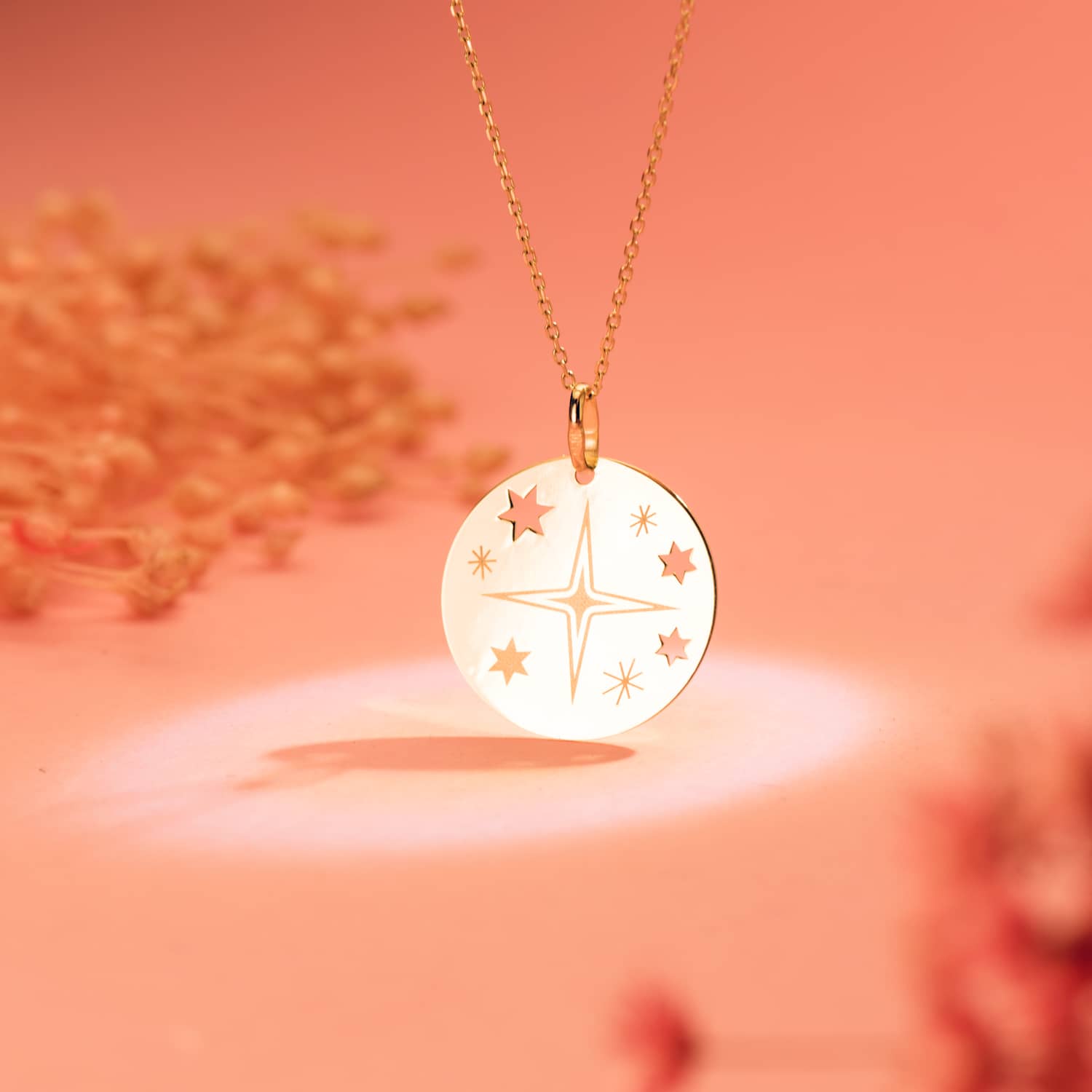 Sumérgete en la opulencia con un colgante de Oro de Ley de 18 Kilates, donde cada detalle reluce con elegancia eterna. Fusiona la distinción del oro puro con la artesanía exquisita. Este 18K COLGANTE ORO AMARILLO REDONDO ROSA DE LOS VIENTOS GRABADA EN BRILLO 18 MM no solo adorna, sino que también eleva cada ocasión con un resplandor único y duradero. Brilla con autenticidad. Además este Colgante está fabricado por el prestigioso fabricante de joyería Pérez Mora de Córdoba, cuna de la joyería de Oro en España.