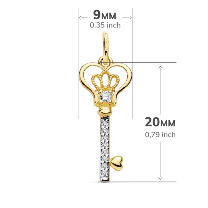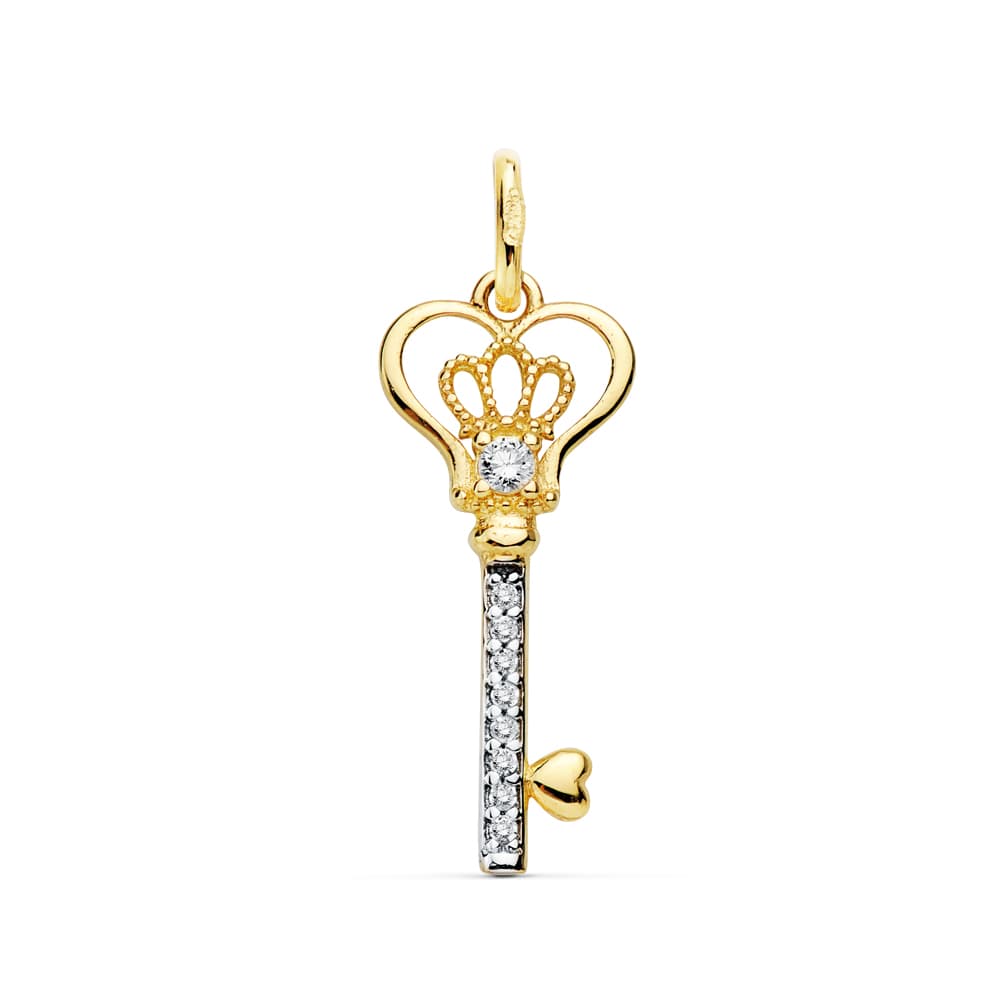 18K COLGANTE LLAVE BICOLOR CIRCONITAS 20X9