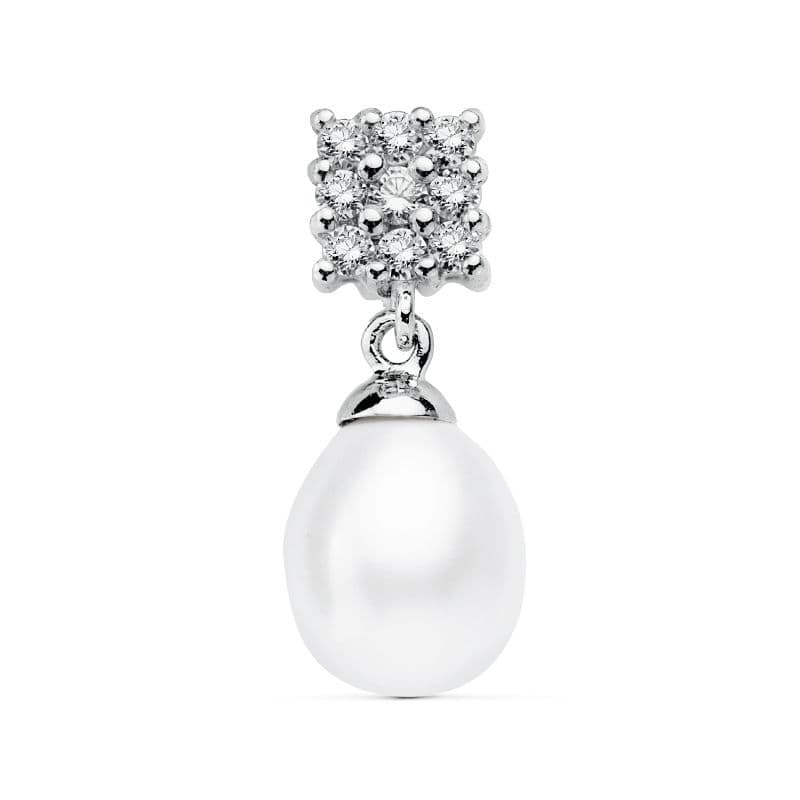18K COLGANTE ORO BLANCO CUAJO Y PERLA 20X8 MM