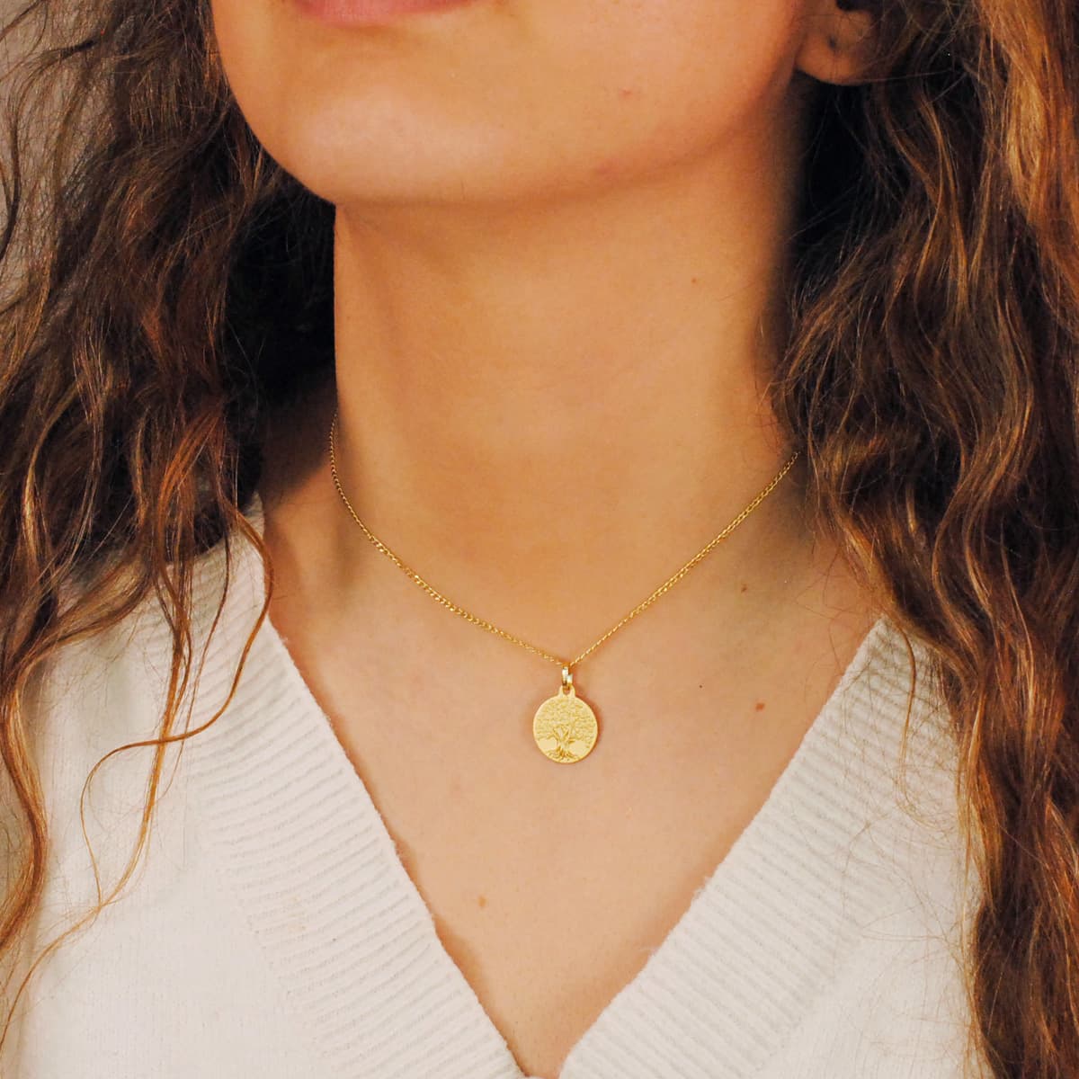 18K MEDALLA ORO AMARILLO ARBOL DE LA VIDA MATIZADA 16 MM