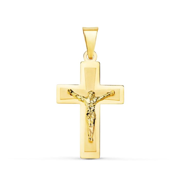 18K CRUZ ORO AMARILLO BRILLO CON CRISTO 25X17 MM