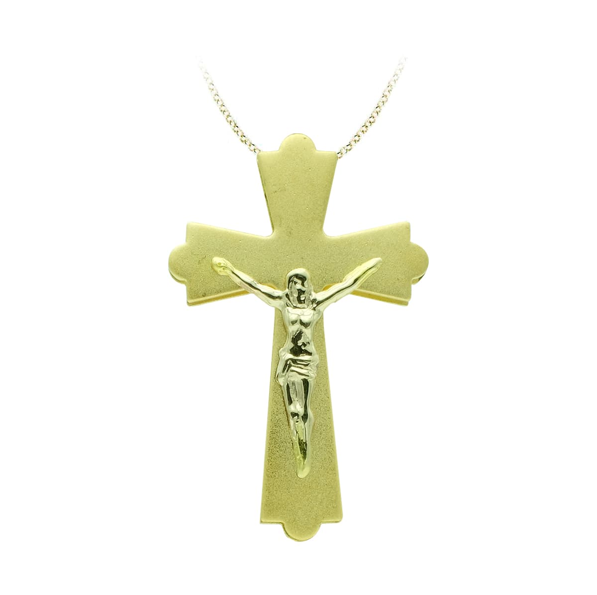 18K CRUZ ORO AMARILLO CON CRISTO BICOLOR 22X14 MM
