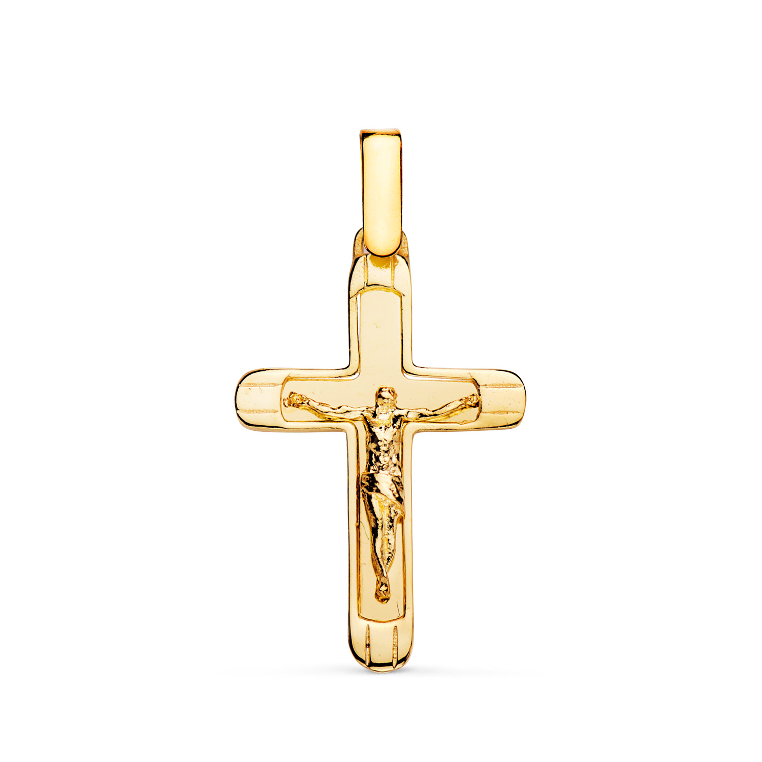 18K CRUZ ORO AMARILLO CON CRISTO EN BRILLO CON BORDES 25 X 17 MM