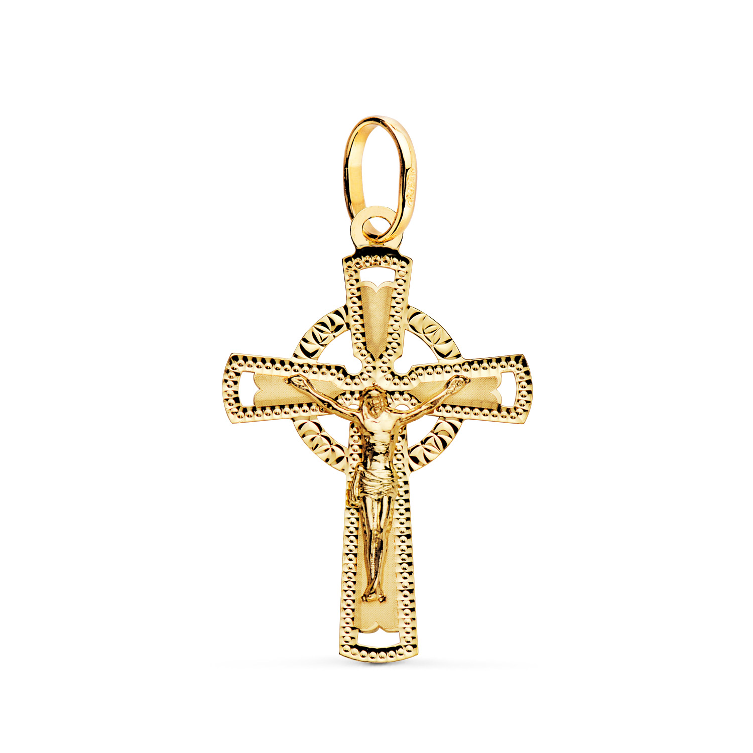 18K CRUZ ORO AMARILLO CON CRISTO TALLADA 28 X 18 MM