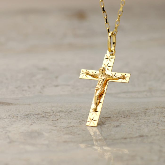 18K CRUZ ORO AMARILLO CON CRISTO TALLADA 34X19 MM