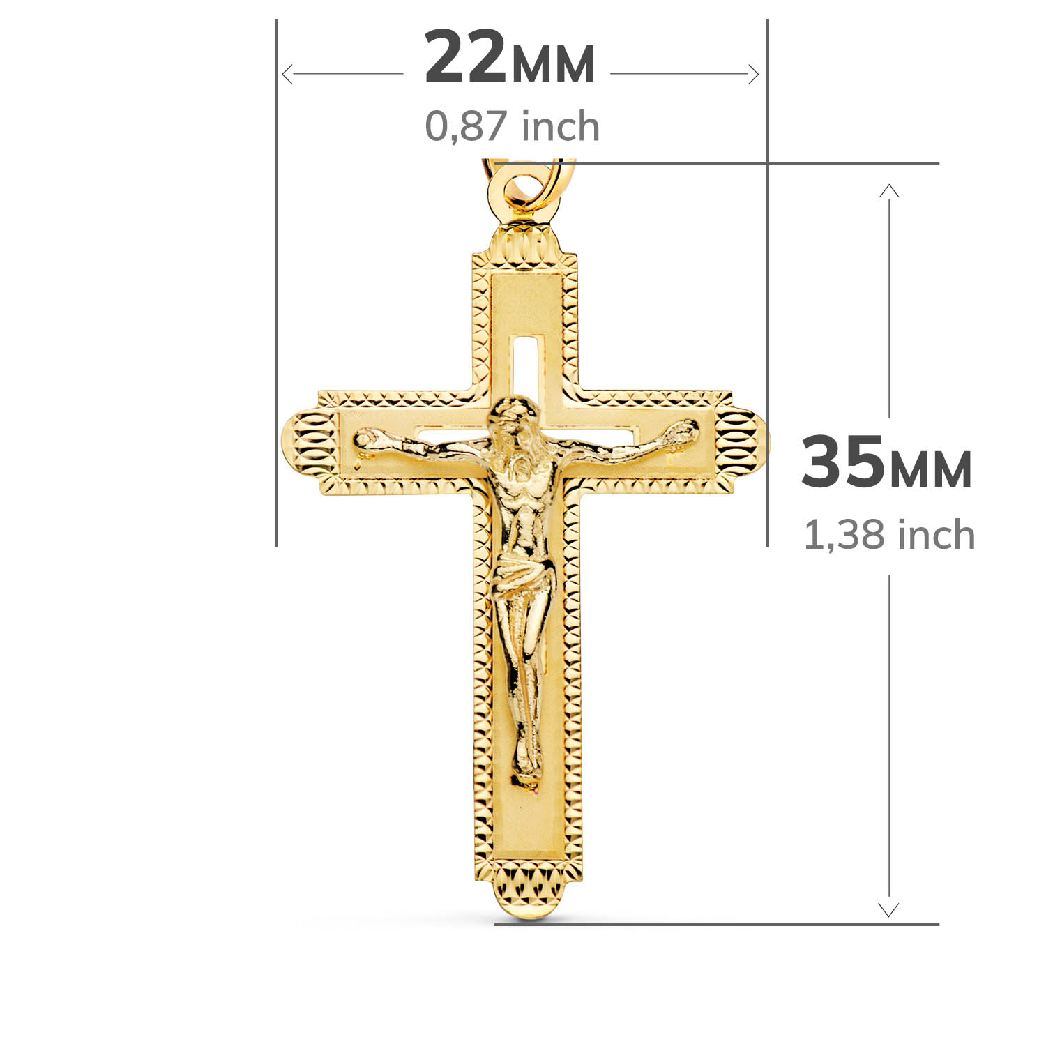18K CRUZ ORO AMARILLO CON CRISTO TALLADA 35X22 MM