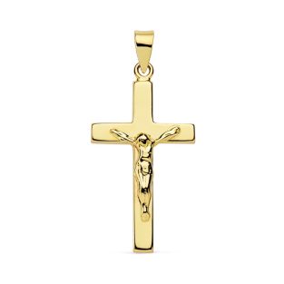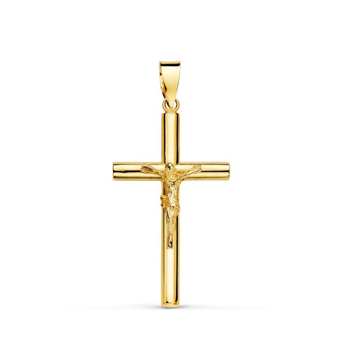 18K CRUZ ORO AMARILLO CON CRISTO TUBO HUECO. 26 X 15 X 2,5 MM