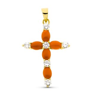 18K CRUZ ORO AMARILLO PIEDRAS 30X15 MM