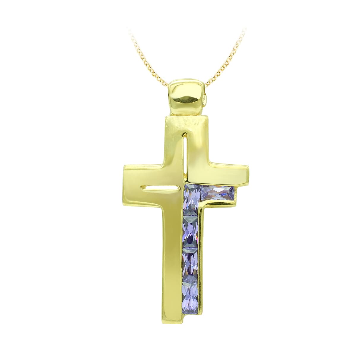 18K CRUZ ORO AMARILLO PIEDRAS 30X15 MM