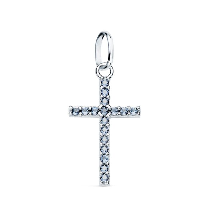 18K CRUZ ORO BLANCO CON CIRCONITAS AZULES. 16X10 MM