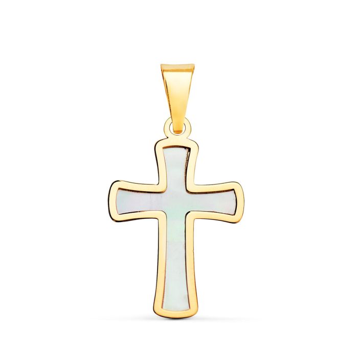18K CRUZ ORO AMARILLO CON NACAR 18 X 12 MM
