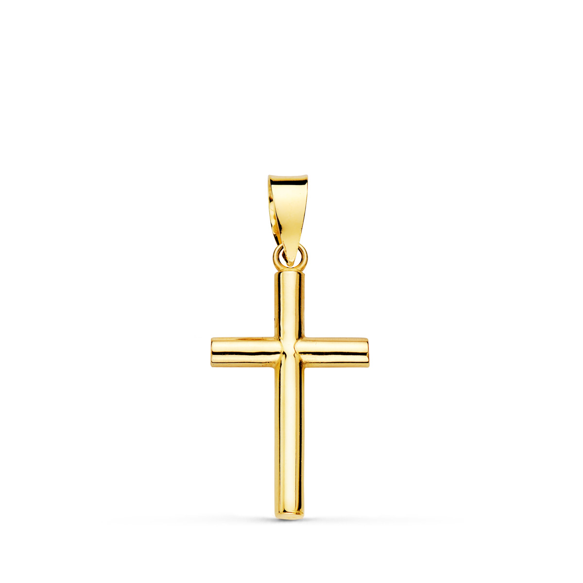 18K CRUZ ORO AMARILLO LISA TUBO HUECO 2.5 MM 16X11 MM