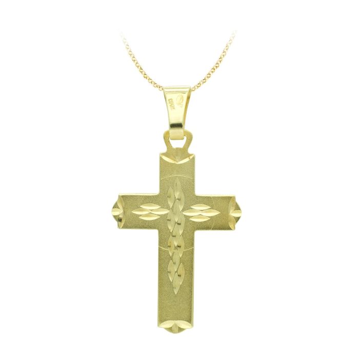 18K CRUZ ORO AMARILLO TALLADA 28X18 MM