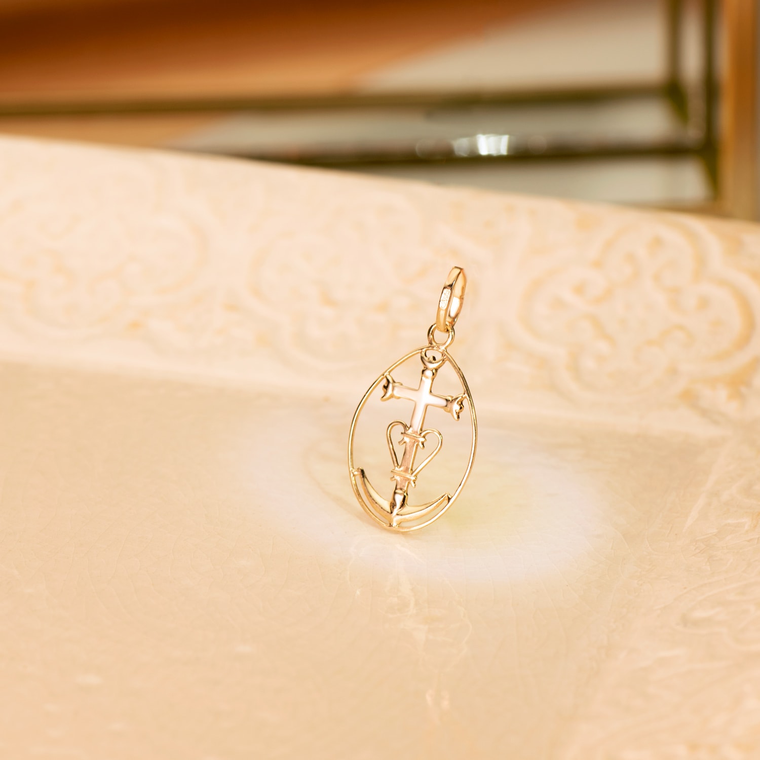 18K COLGANTE ORO AMARILLO CRUZ DE LA CAMARGA CON CERCO. 25 X 17 MM