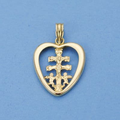 Abraza la devoción con esta Cruz de Caravaca de Oro de Ley de 18 Kilates. Cada curva de la 18K CORAZON CARAVACA 20X16 MM, meticulosamente tallada, encarna la espiritualidad y el lujo. Esta joya fusiona la fe con la elegancia atemporal, creando un símbolo divino que ilumina tu camino con gracia y distinción incomparables. Además esta Cruz de Caravaca está realizada por el prestigioso fabricante de joyería Pérez Mora de Córdoba, cuna de la joyería de Oro en España.