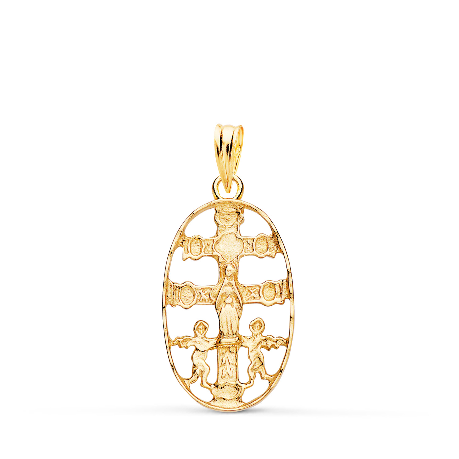 18K CRUZ DE CARAVACA ORO AMARILLO CERCO OVAL TALLADO 25 X 13 MM