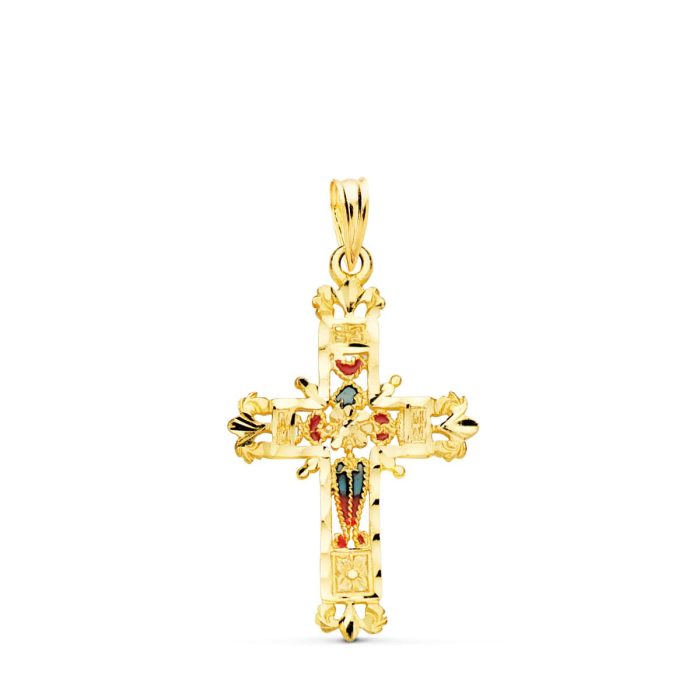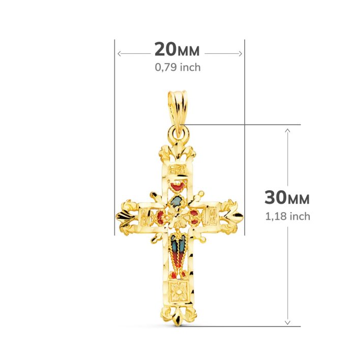 Eleva tu fe con esta Cruz de Oro de Ley de 18 Kilates, donde la espiritualidad se encuentra con la elegancia. Cada línea de 18K CRUZ ORO AMARILLO VIDRIERA CATEDRAL BORDES TALLADOS. 30X20 MM es una expresión de devoción, fusionando la pureza del oro con la artesanía excepcional. Este símbolo trasciende la moda, convirtiéndose en una declaración de fe que brilla con autenticidad. Además esta Cruz está fabricada por el prestigioso fabricante de joyería Pérez Mora de Córdoba, cuna de la joyería de Oro en España.