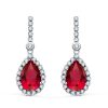 18K PENDIENTES ORO BLANCO DOS CUERPOS CON PIEDRA ROJA 12 X 8MM. 33X12MM