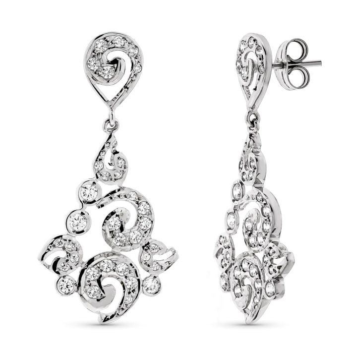18K PENDIENTES ORO BLANCO LARGOS FILIGRANA