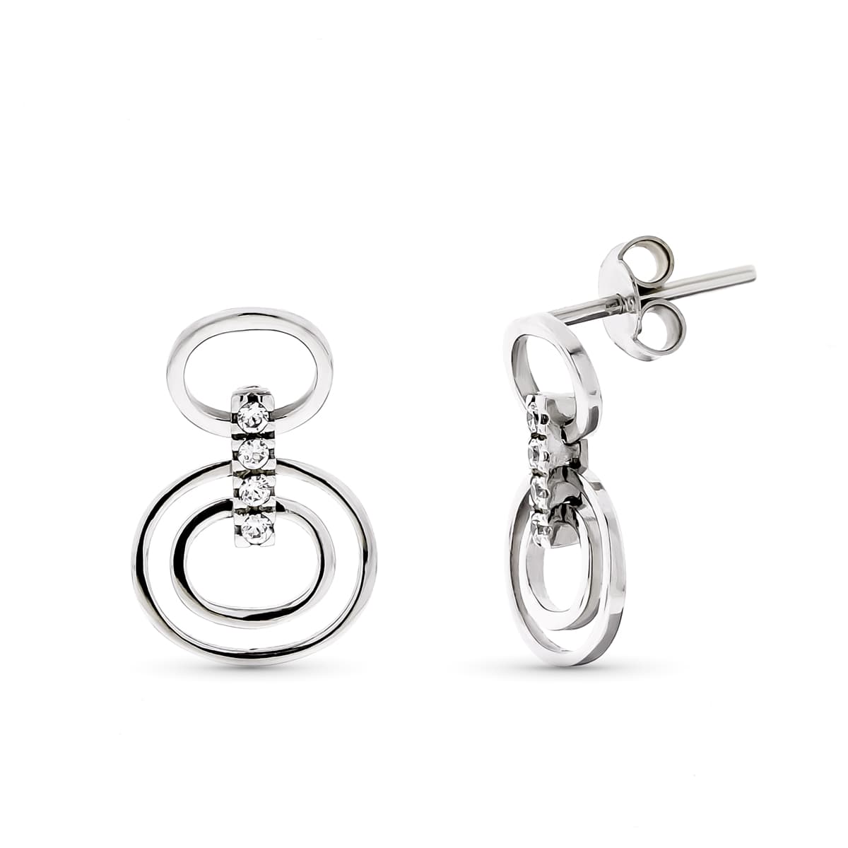 18K PENDIENTES ORO BLANCO LARGOS REDONDOS Y CIRCONITAS