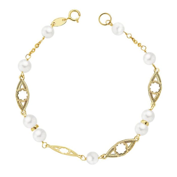 18K PULSERA COMUNION PERLA 5 MM 17 CM