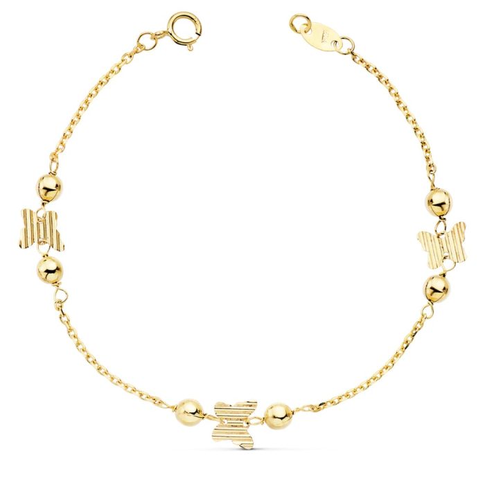 18K PULSERA MARIPOSAS Y BOLAS LISAS 4 MM