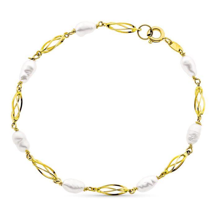 18K PULSERA ORO AMARILLO 19CM PERLA CULTIVADA 5 MM