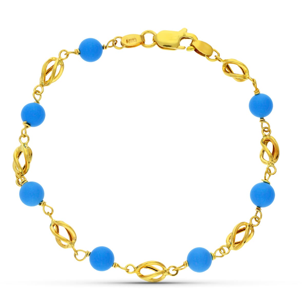 18K PULSERA ORO AMARILLO JAULA TURQUESA 17 CM