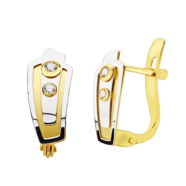 18K PENDIENTES BICOLOR CIRCONITAS 10X5 MM