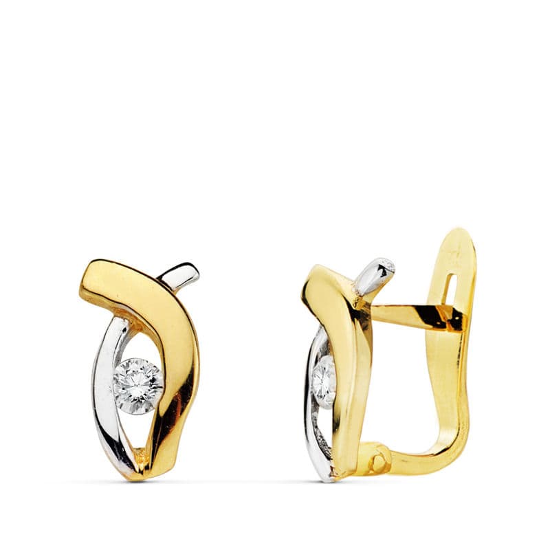 18K PENDIENTES BICOLOR CIRCONITAS 10X5 MM