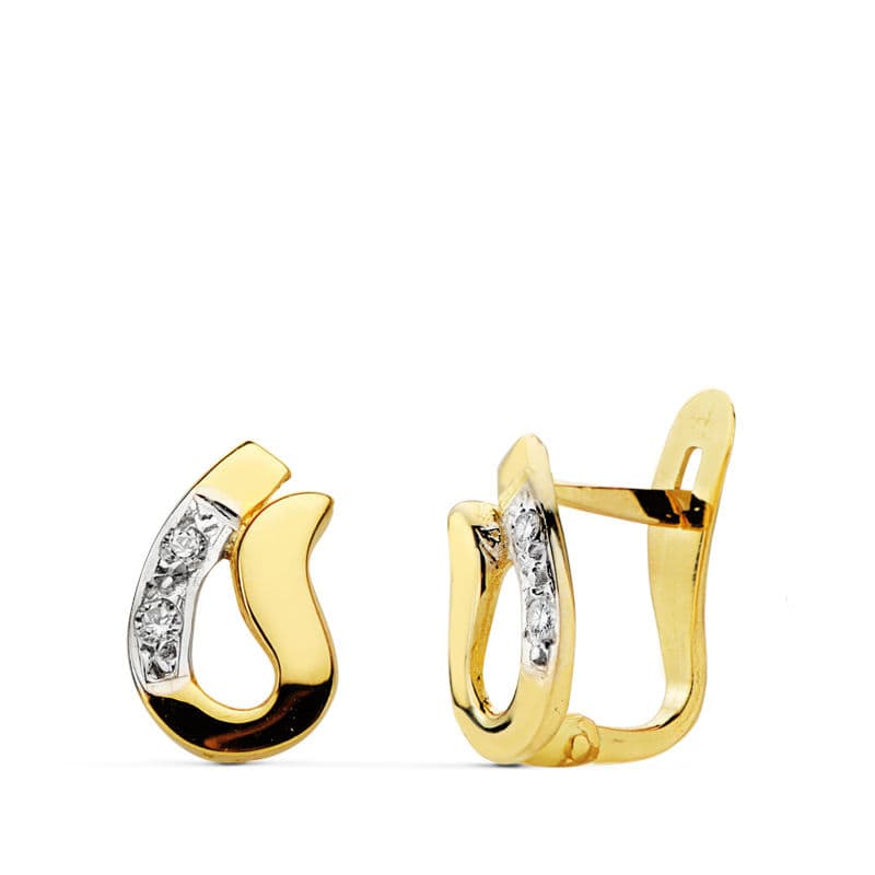 18K PENDIENTES BICOLOR CIRCONITAS 9X5 MM