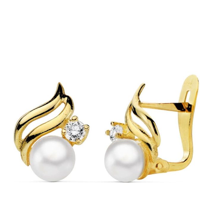 18K PENDIENTES PERLA Y CIRCONITAS 11X7 MM