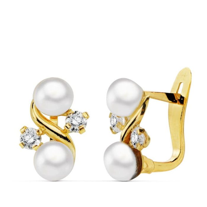 18K PENDIENTES PERLA Y CIRCONITAS 11X8 MM