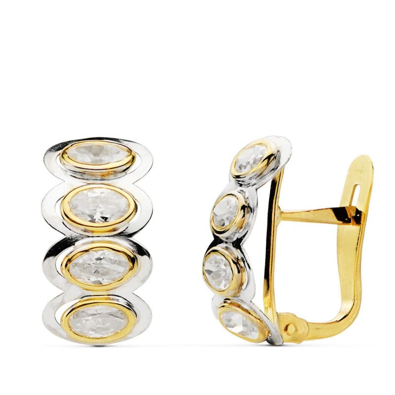 18K PENDIENTES PIEDRAS OVAL BICOLOR 15X8 MM