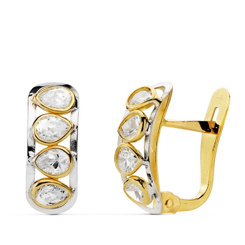 18K PENDIENTES PIEDRAS PERA BICOLOR 14X5 MM