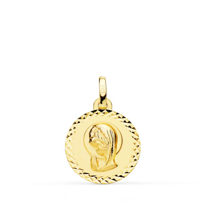 18K MEDALLA ORO AMARILLO VIRGEN NIÑA TALLA CRUZADA 16 MM