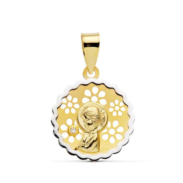 18K MEDALLA VIRGEN NIÑA BICOLOR 15 MM CIRCONITA